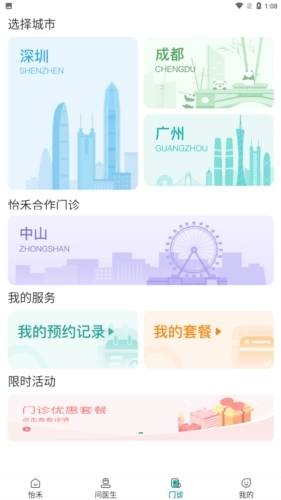 怡禾门诊目前已在深圳、广州、成都开设了分院,同时在中山、香港设有合作门诊,可提供儿科、皮肤科、口腔科等多个科室的儿童及成人诊疗服务。