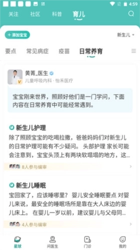 2、进入主页面后,这里呈现的是新生儿专区,专区内包含医生给出的相关建议。