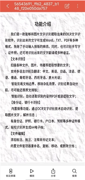 5、保存操作完成后,系统会自动跳转至“我的文件”页面。在此页面中,你可以选择并打开需要查看的文件;进入文件详情页后,点击右上角的三点图标,会弹出打印、投屏、缩略图、设置以及“用其他应用打开”等功能选项,你可根据实际需求选用这些功能。此外,你还能点击“编辑”按钮对文件进行修改,页面下方还设有锁定屏幕、播放、分享和搜索等功能。