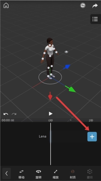 3、在模型编辑页面点击【+】,进入动画选择页面。