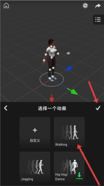 4、在动画选择界面中找到并选择【Walking】动画,这样就能完成动画的添加操作了。