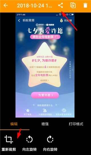 3、点击编辑页面顶部的分享按钮后,用户便能进入导出界面,可选择将照片以pdf或jpg格式导出。