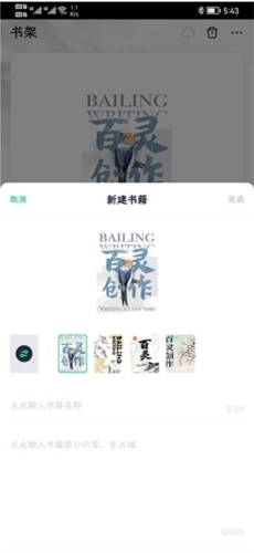 2、我们可以挑选书籍的页图,也能自行添加图片,接下来输入书籍的名称与简介,然后点击完成按钮,就能进入下一个环节了。
