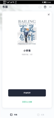 3、创建完成后,首页会显示刚创建好的书籍,接下来就能开始创作了,点击“开始码字”即可。