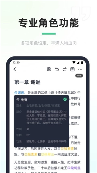 和一般的小说创作软件不一样,它能对局部文字进行变色、加粗、倾斜等处理,创作过程中可以标记内容,这样后续修改和润色起来会更方便。