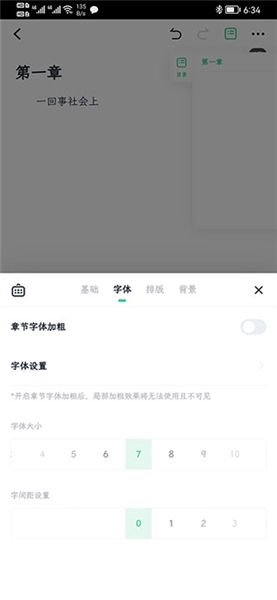 2、设置选项包含基础、字体、排版、背景这几个板块,我们先点击“字体”,接着在字体界面中找到并点击“字体设置”,即可进入对应的字体设置界面。