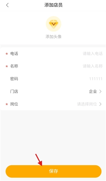 4、在弹出的表单里,按顺序填写店员姓名、联系方式等相关信息,检查确认没有问题后,点击保存按钮,这样就完成添加操作了。