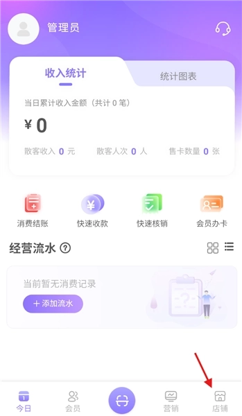 1、打开亿英会员软件,在底部导航栏找到“店铺”选项并点击进入。