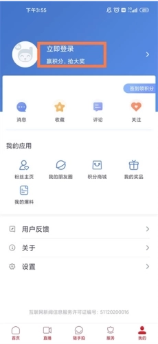 1、第一步,打开都江堰发布的最新版本,接着在“我的”板块里点击立即登录按钮。