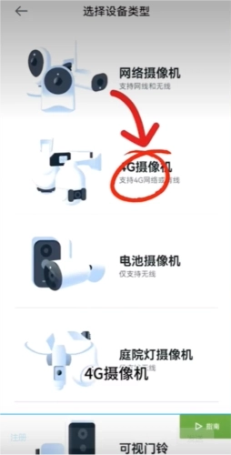 2、根据你实际使用的摄像头类型进行选择即可,例如小编用的是4G摄像头,所以这里就选择4G摄像头这一选项。