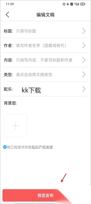 开始整理个人稿件,补充作品的详实信息,最后点击“预览发布”按钮即可。