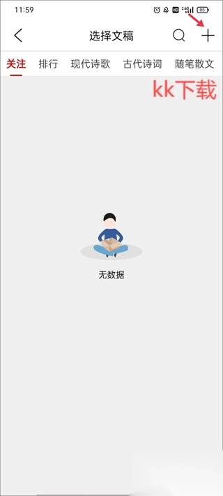这里会展示您创作的所有文献作品,请点击右上角的“+”按钮。