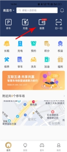 2、在首页点击停车可以进入停车/充电服务。