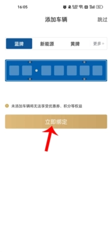 3、然后点击车牌的类型点击输入车牌,点击立即绑定。