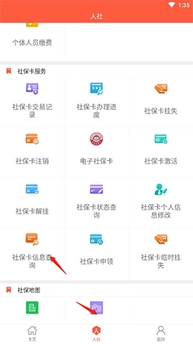 1、启动软件后,点击底部的“人社”选项,接着选择“社保卡信息查询”功能。