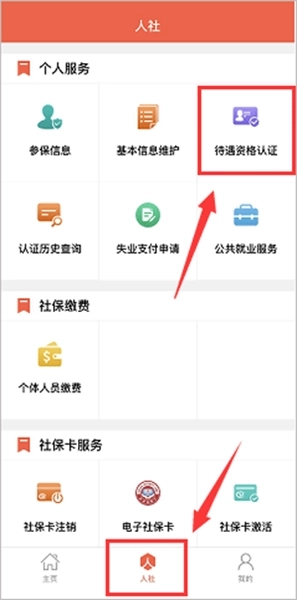 1、顺利完成“菏泽人社”的安装与登录操作后,在“人社”页面中找到并点击“待遇资格认证”选项。