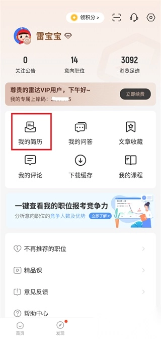进入主页,点击我的,点击我的简历;