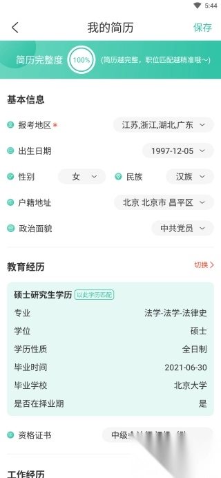 完善简历,点击右上角保存;
