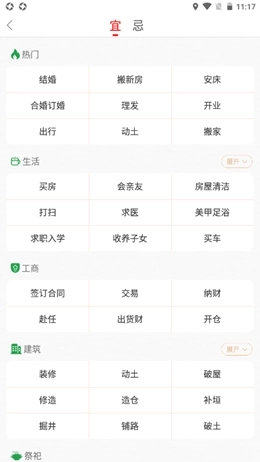 4、吉日查询服务涵盖婚丧嫁娶相关事宜,包括结婚、订婚,以及会亲友、出行、动土、起基、掘井、买车、祈福、栽种、搬家、理发、纳财等各类事项的吉日查询。