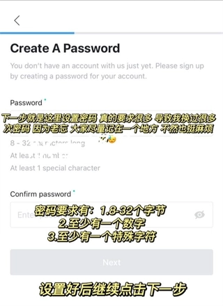 5、下一步就是这里设置密码,密码要求有:8-32个字节,至少有一个数字和特殊字符,设置好后继续点击下一步