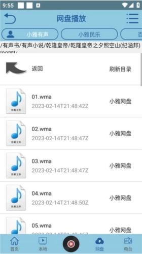 如果用户有自己的网盘资源,可以将其导入到中,进行在线收听。