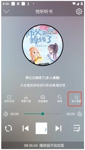 4、在播放页面,点击“加入收藏”,之后你就可以在“我的书架”中查看这本书了。