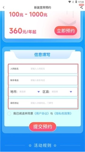 2、进入页面查看宽带活动规则等信息。