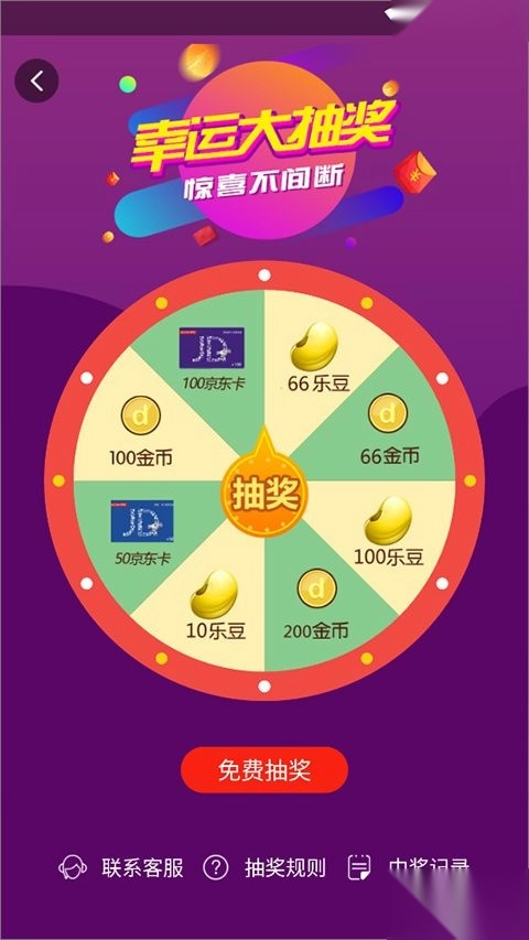 在活动页面参与抽奖,有机会赢取乐豆、金币或京东卡,这些奖励可用于折扣充值。