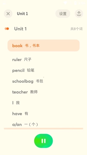 5、用户进入之后就能看到本单元的所有词汇内容,我们首先将其快速建议,然后按照语音播放的内容进行书写即可。
