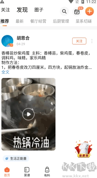 注册就能免费获得专属定制的厨师服,参加活动还有机会赢取丰富好礼。平台配备了视频分享功能,让大家实时互动交流变得更加方便快捷。