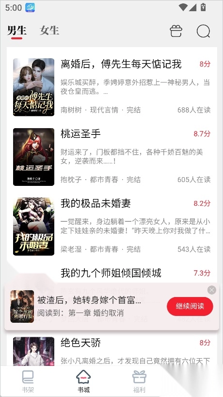 4、题材丰富多样,既有连载作品也有完结作品,分类清晰明了,支持个人书架管理功能,让追书变得更加高效。