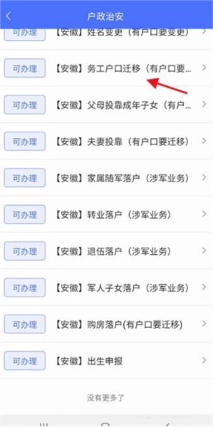 6.进入户政公安,找到下方的务工户口迁移进入。