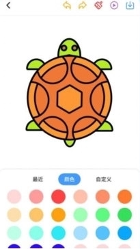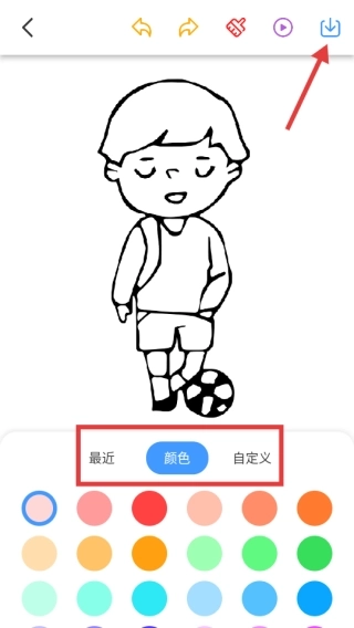 3、通过【最近】【颜色】【自定义】这几个选项来挑选颜色,选好之后点击右上角的保存图标,就能导出作品了。