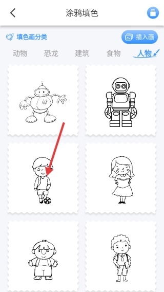2、在涂鸦填色页面,挑选“人物”分类里的线稿,着手进行填色操作。