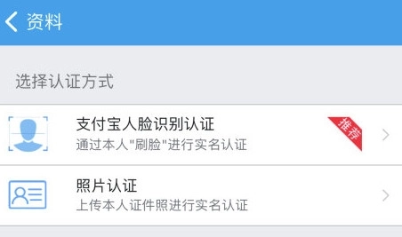 3、根据提示选择合适的认证方式完成实名验证流程。