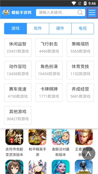 2、点击右上角的三条横线,会有很多的分类,用户可以按照游戏分类寻找自己想玩的游戏;