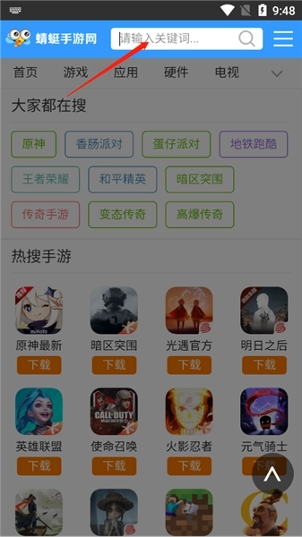 3、也可以直接点击搜索框,输入自己想玩的游戏;
