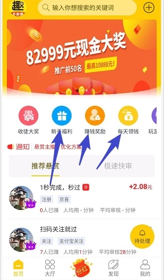 1、去领取契合你需求的任务,接着完成一项项任务,以此获得报酬。