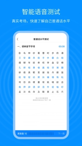 模拟真实考场,人工智能测评报告,快速了解自己普通话的真实水平。
