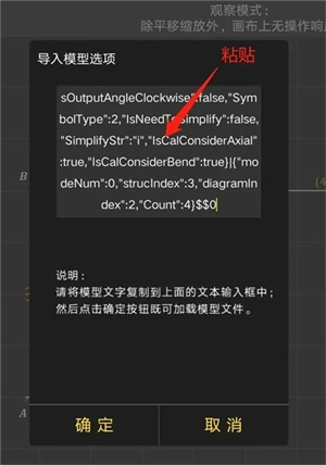 4、把前面复制到剪贴板的文本内容想办法粘贴到弹出的窗口中(电脑端可以直接按Ctrl+V),再点击“确定”即可加载之前被导出的模型文件了。
