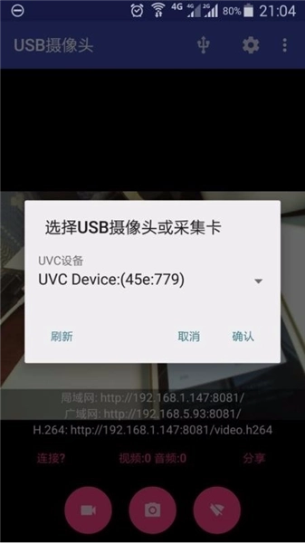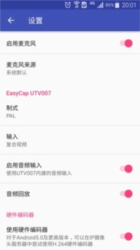 *支持使用外置USB声卡输入代替UVC设备内建的音频输入,可以从设置里更改此选项