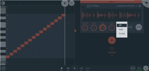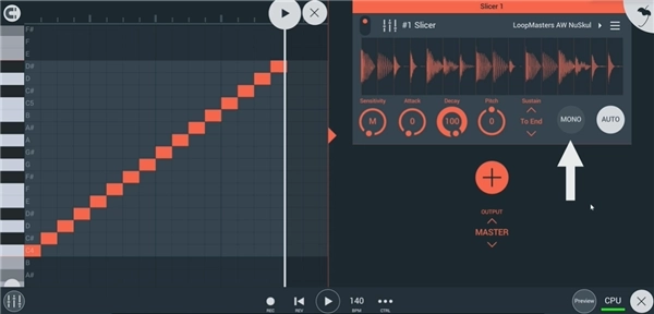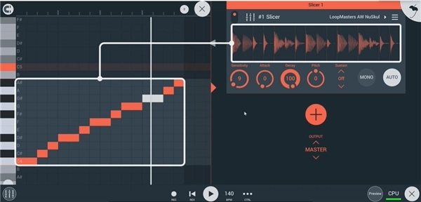 6、当然在默认情况下,只要灵敏度旋钮被改变,切片机会将新的音符输出到钢琴卷帘中。