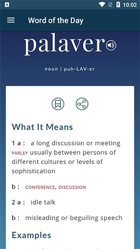 当您查找一个新单词时,您不仅仅是在单独学习该单词。Merriam-Webster通过添加同义词和反义词将您带到下一个层次。因此,您总是会很高兴收到更多与您感兴趣的问题相关的词汇。从这里开始,您的词汇变得越来越多样化和有价值。更具体地说,如果您的移动设备未连接到互联网,您仍然可以查看它们,因为它始终在字典中可用。