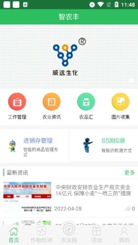 智农丰是一款由河北威远生物化工有限公司发行的专门为农民们准备的农业管理软件,该软件中是有很好的功能,能够帮助农民快速的管理好自己的农业。利用互联网的方式帮助农资渠道商管理店铺,不再担心账本丢失和数据统计的问题,经营更精细、更可靠。不仅能够为用户提供最新最全的农业资讯,还能够帮助农业种植户解决渠道管理、销售管理、供应链管理、标准化种植过程管理、农作物健康管理等问题。
