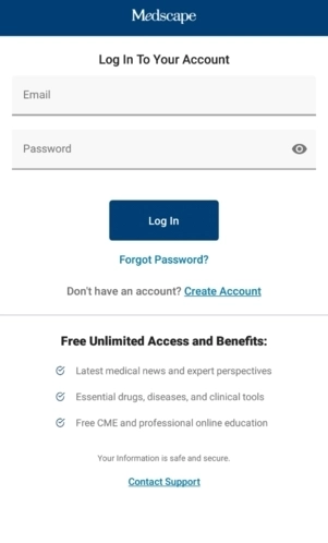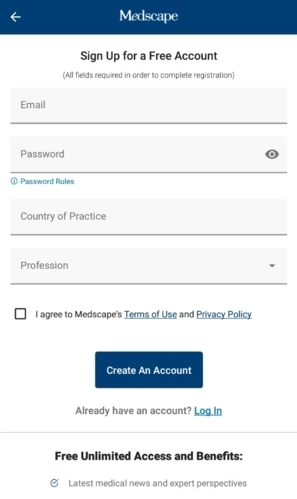 使用您的Medscape账户即可登录Medscape应用程序。若您尚未拥有Medscape账户,可在应用内免费注册,整个过程仅需几秒。