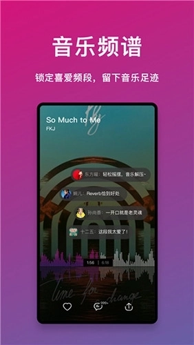 曲子根据频段生成波形进度条,点击进度条,发送对应时间戳的音乐留言,让DJ制作人们知道你喜欢的乐段。
