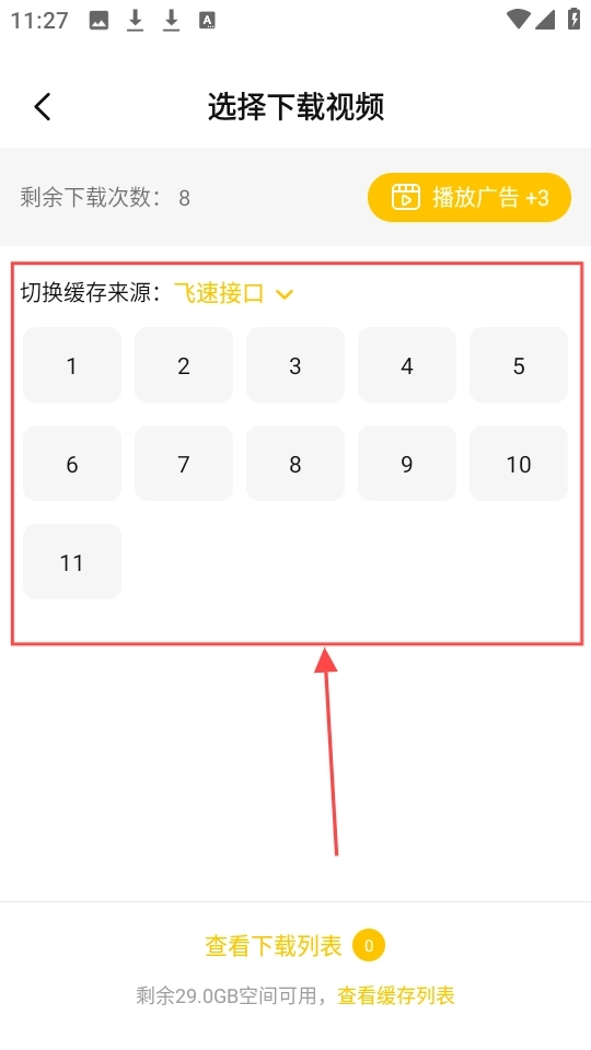3、接着可根据需要选择特定集数进行离线。