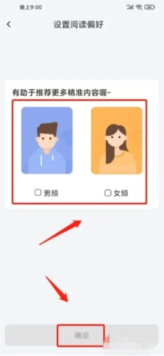 3、进入阅读偏好设置界面,勾选你感兴趣的类型,点击【确定】完成选择。
