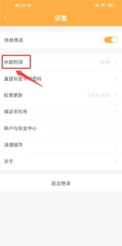 3、在设置界面中,点击【休眠时间】功能。