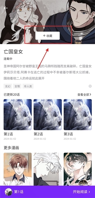 4.你可以通过分类浏览或者搜索功能找到自己感兴趣的作品,点击进入作品页面后,在主页上方能看到“+收藏”按钮,点击它就能把作品加入书架了。